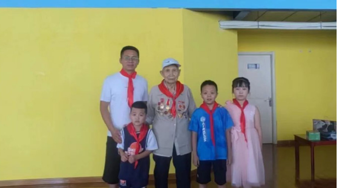 8月2日,頤信養(yǎng)老黨支部成員來到團結(jié)西路社區(qū),與退伍老兵們重溫軍人入伍誓詞,并帶領(lǐng)社區(qū)兒童聆聽他們的故事。退伍老兵馮博用最質(zhì)樸的語言分享了曾經(jīng)軍旅生涯難忘事跡,促使新一代社會主義接班人感受艱苦卓絕的革命歷程,深刻領(lǐng)悟軍人們不屈不撓、艱苦奮斗的革命精神和高尚情操,為兒童們樹立人生榜樣,培養(yǎng)遠大理想和堅定信念。最后,孩子們?yōu)橥宋槔媳灰凰蜕狭思t領(lǐng)巾與誠摯的祝福,爺爺們微顫卻標(biāo)準(zhǔn)的軍禮、溫暖而寬厚的笑容,令在的孩子們無不為之動容,這也是老一輩和新一代之間的精神傳承。